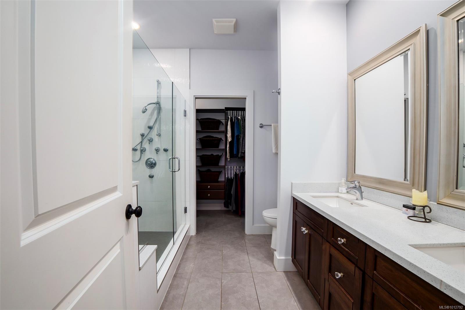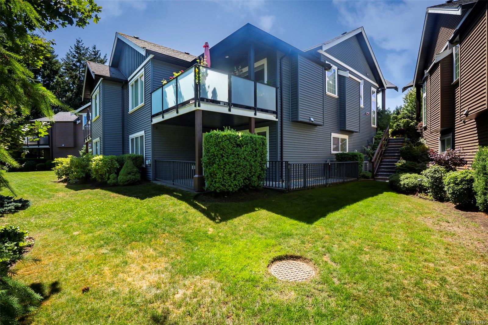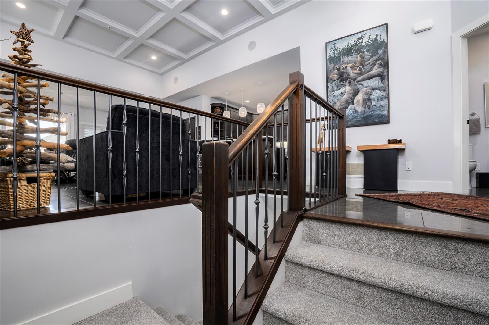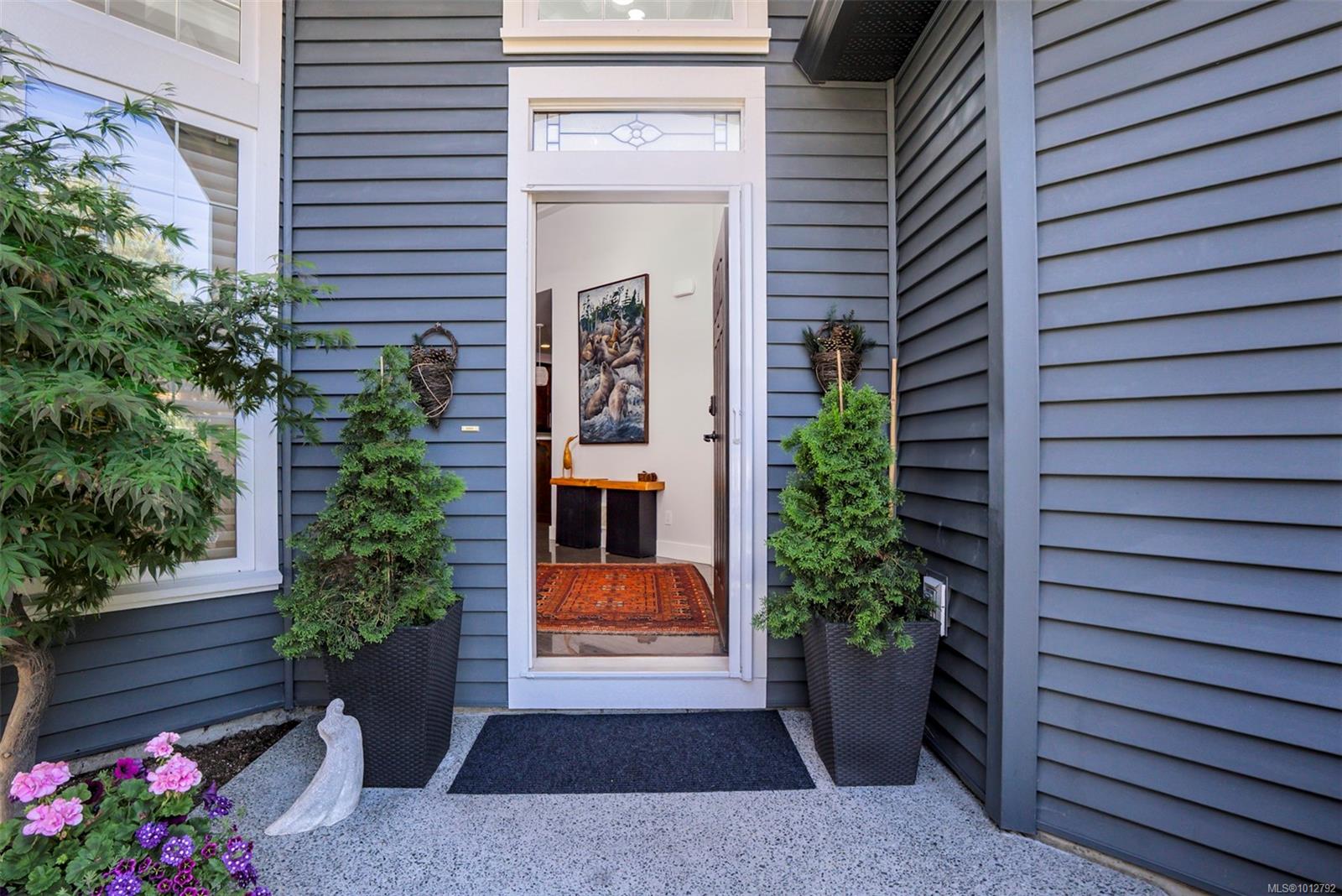 Stunning level entry 4 bedroom LUXURY townhouse in the desirable Luxford Estates. It really does not get any nicer than this! Quiet off the street location is just minutes to all the North Nanaimo shopping and just a short walk to both levels of school (Dover Bay High and McGirr elementary). With main level entry this layout will appeal to those wanting to avoid stairs but offering a gorgeous walk out lower level. Primary bedroom and laundry on the main in an open plan concept with high coffered ceilings and stunning tile floor. Deluxe kitchen with Stainless steel appliances (LG smart fridge with Ice & Water), quartz counters, glass tile back splash, pantry closet & adjacent laundry room with deep stainless sink and additional storage pantry room. Primary bdrm features a luxury ensuite with dual sinks, heated floors, oversized shower with Rain shower head and multi body sprayers, vanity desk and walk-in closet. Lower level is perfect for teens/guests with a family/media room with wet bar, fridge & Microwave. 3 bedrooms, office and another full bath with heated tile floors. Great outdoor spaces too with upper (partially covered) sundeck & lower covered patio. If you are looking for the best of both worlds this may be it. Enjoy the efficient year round comfort & cooling of a heat-pump plus extras such as electric fireplace, Beam B/I Vacuum system, ceiling fans, recessed lighting, B/I speaker system, custom blinds, Phantom screen and the most amazingly tidy garage. Leave the mower behind & enjoy an easy care lifestyle in one of Nanaimo’s nicest townhomes. Pets permitted.