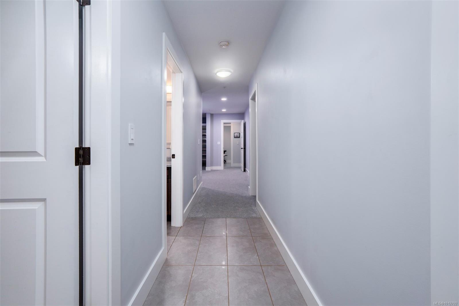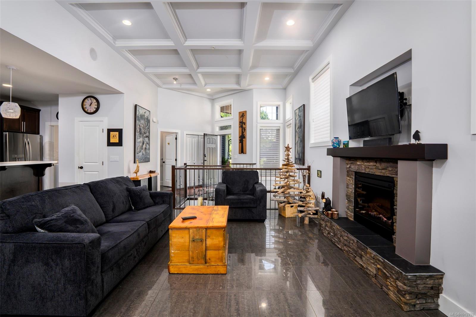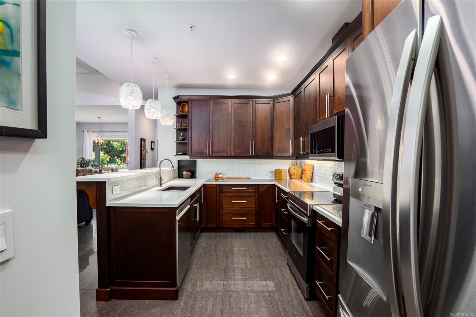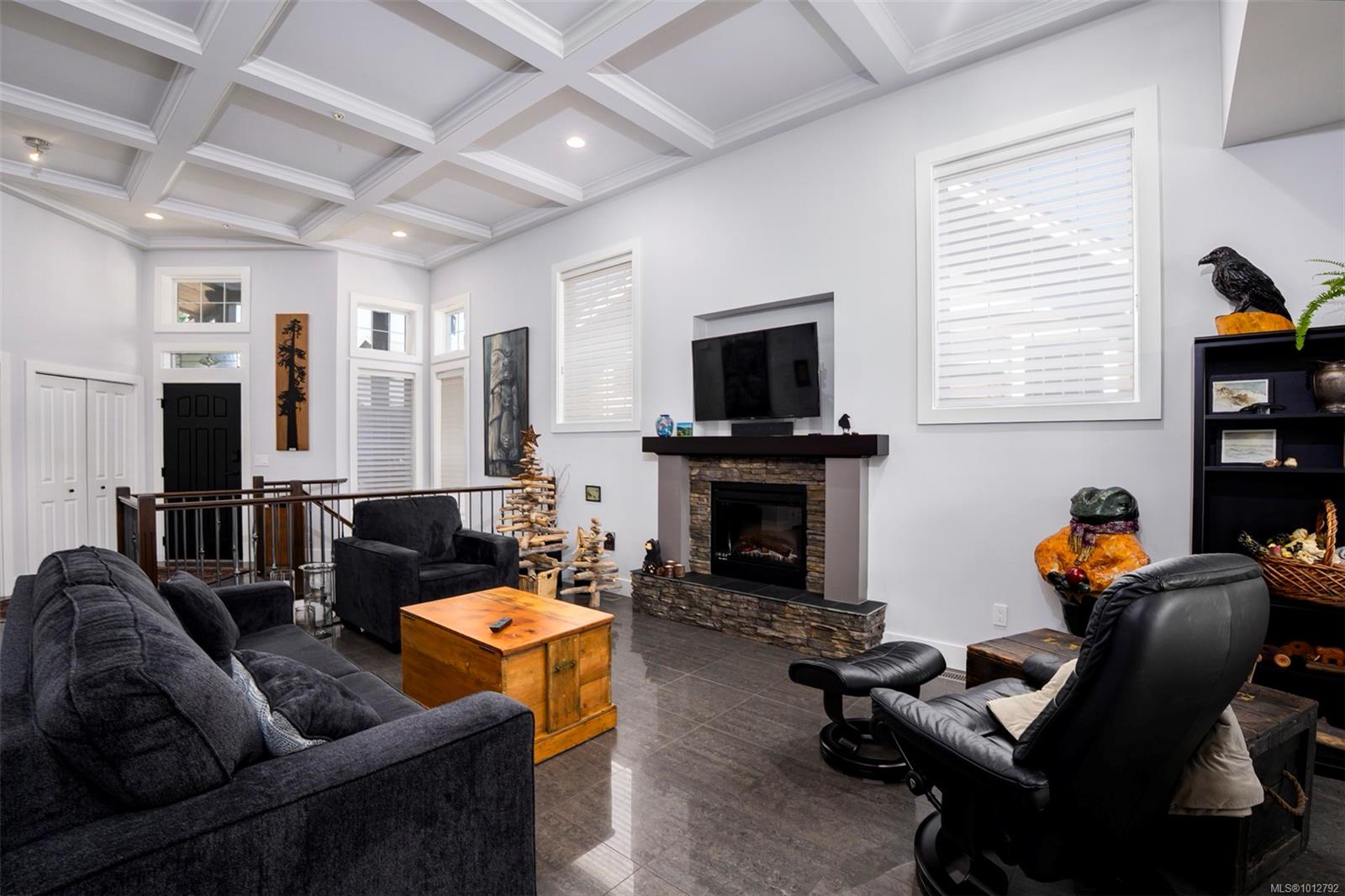 Stunning level entry 4 bedroom LUXURY townhouse in the desirable Luxford Estates. It really does not get any nicer than this! Quiet off the street location is just minutes to all the North Nanaimo shopping and just a short walk to both levels of school (Dover Bay High and McGirr elementary). With main level entry this layout will appeal to those wanting to avoid stairs but offering a gorgeous walk out lower level. Primary bedroom and laundry on the main in an open plan concept with high coffered ceilings and stunning tile floor. Deluxe kitchen with Stainless steel appliances (LG smart fridge with Ice & Water), quartz counters, glass tile back splash, pantry closet & adjacent laundry room with deep stainless sink and additional storage pantry room. Primary bdrm features a luxury ensuite with dual sinks, heated floors, oversized shower with Rain shower head and multi body sprayers, vanity desk and walk-in closet. Lower level is perfect for teens/guests with a family/media room with wet bar, fridge & Microwave. 3 bedrooms, office and another full bath with heated tile floors. Great outdoor spaces too with upper (partially covered) sundeck & lower covered patio. If you are looking for the best of both worlds this may be it. Enjoy the efficient year round comfort & cooling of a heat-pump plus extras such as electric fireplace, Beam B/I Vacuum system, ceiling fans, recessed lighting, B/I speaker system, custom blinds, Phantom screen and the most amazingly tidy garage. Leave the mower behind & enjoy an easy care lifestyle in one of Nanaimo’s nicest townhomes. Pets permitted.
