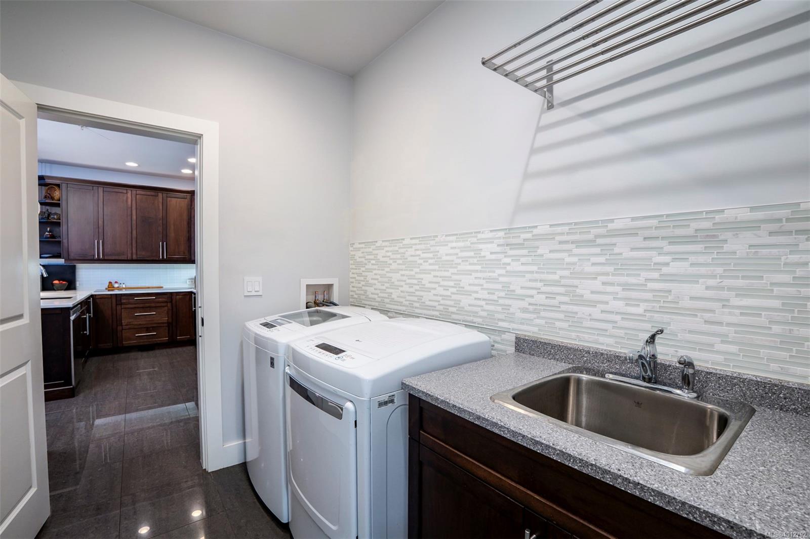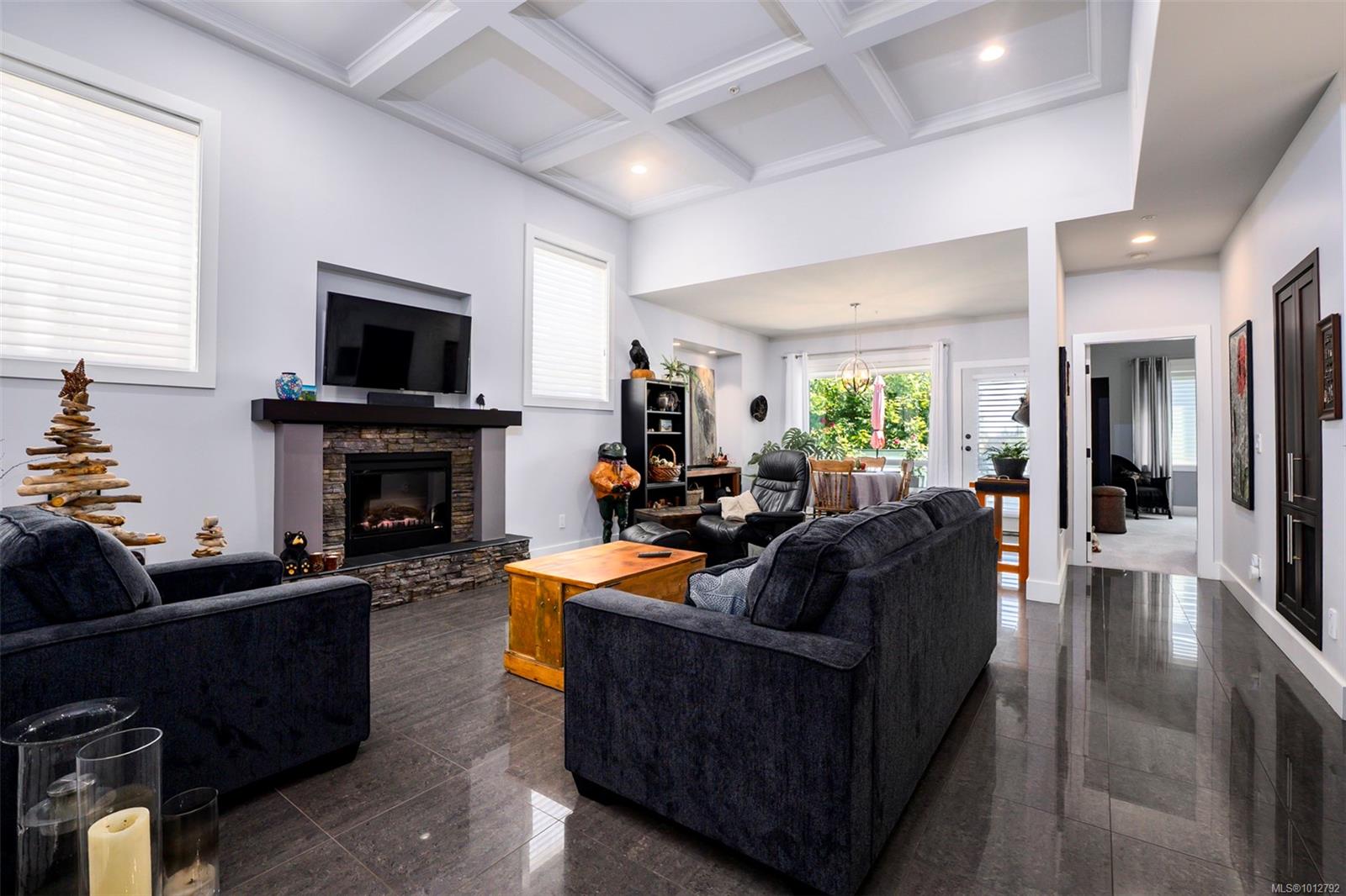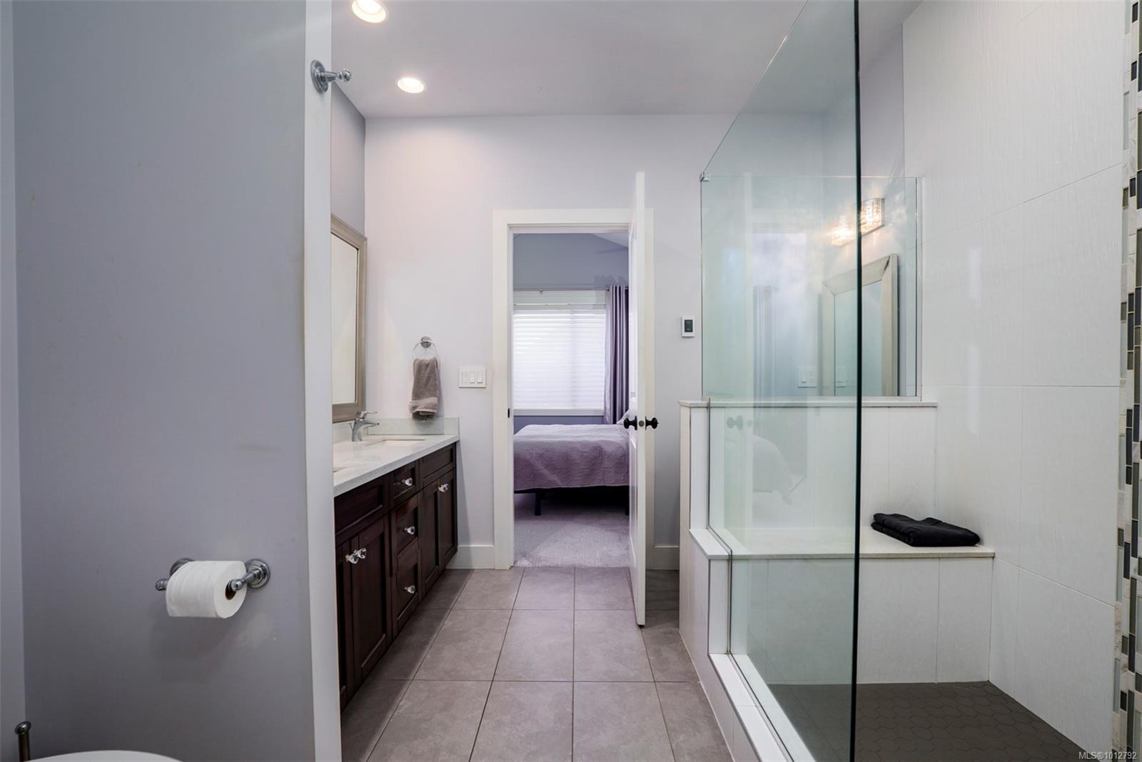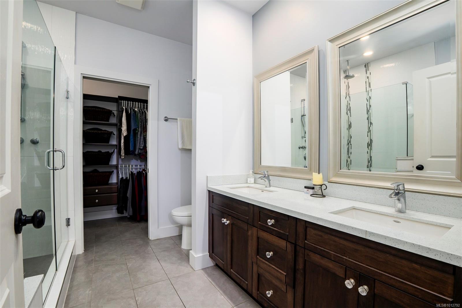 Stunning level entry 4 bedroom LUXURY townhouse in the desirable Luxford Estates. It really does not get any nicer than this! Quiet off the street location is just minutes to all the North Nanaimo shopping and just a short walk to both levels of school (Dover Bay High and McGirr elementary). With main level entry this layout will appeal to those wanting to avoid stairs but offering a gorgeous walk out lower level. Primary bedroom and laundry on the main in an open plan concept with high coffered ceilings and stunning tile floor. Deluxe kitchen with Stainless steel appliances (LG smart fridge with Ice & Water), quartz counters, glass tile back splash, pantry closet & adjacent laundry room with deep stainless sink and additional storage pantry room. Primary bdrm features a luxury ensuite with dual sinks, heated floors, oversized shower with Rain shower head and multi body sprayers, vanity desk and walk-in closet. Lower level is perfect for teens/guests with a family/media room with wet bar, fridge & Microwave. 3 bedrooms, office and another full bath with heated tile floors. Great outdoor spaces too with upper (partially covered) sundeck & lower covered patio. If you are looking for the best of both worlds this may be it. Enjoy the efficient year round comfort & cooling of a heat-pump plus extras such as electric fireplace, Beam B/I Vacuum system, ceiling fans, recessed lighting, B/I speaker system, custom blinds, Phantom screen and the most amazingly tidy garage. Leave the mower behind & enjoy an easy care lifestyle in one of Nanaimo’s nicest townhomes. Pets permitted.