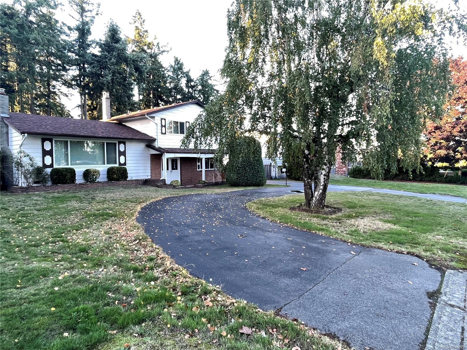 Classic Lynburn Split Level ! First time on market in over 34 years. Featuring a great circular drive around the Birch tree and a nice level 12,000+ Sqft lot on the golf course with access at the 18th Tee-box. Great location in one of Nanaimo’s more desirable neighbourhoods with 3 bedrooms, 3 bath, spacious 23+ft living room with EnviroGas Fireplace and a dining room leading to a huge almost 30 ft patio on the setting sun side of the home with Nat Gas BBQ hook-up . Roomy kitchen with cork floor and built-in appliances features space for a table and a nice outlook over the expanse of the back yard. Solid Cedar front doors with lovely stained glass design. The new owner will undoubtedly plan on updates but you could easily change out a couple of bdrm carpets, paint a few walls & carry right on. The roof is not that old (2018?) & the windows have all been replaced with newer vinyl sash units. Gas hot water (replaced just 3 yrs ago) and Carrier gas forced air heat. 2 Pce ensuite bathroom is roomy enough it may suit a conversion to 3 pce. Lower level family room makes for a great TV room/den with built-in sewing centre & bookshelves. Bright & roomy laundry room features cabinets and counter space, deep sink and tons of built-in storage. Fenced back yard with easy drive through access is ideal for your detached workshop. Walk to the Departure Bay beach just 8 or so blocks away, catch a bus around the corner or walk to all the shopping at Brooks Landing. If where you live is important this well priced home will catch your eye. See Virtual Tour